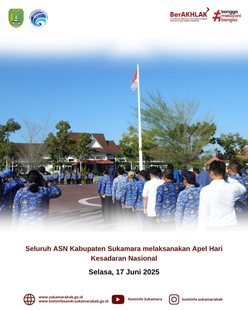 Apel ini diikuti oleh para kepala perangkat daerah, pejabat eselon II. III dan IV, staf ASN, serta tenaga honorer di lingkungan Pemkab Sukamara.