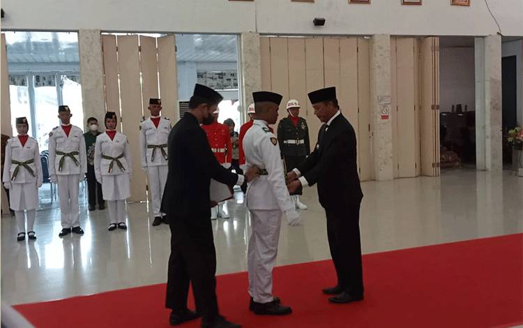 Bupati Sukamara Windu Subagio resmi mengukuhkan 70 anggota Pasukan Pengibar Bendera (Paskibra) pada Selasa, 15 Agustus 2023.