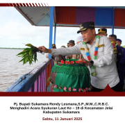 Acara syukuran laut ke – 19 di hadiri Pj. Bupati Sukamara Rendy Lesmana, S.P.,M.M.,C.R.B.C. pada hari Sabu tanggal (11/01/2025) di Kecamatan Jelai, hadir Forkopimda Sukamara, Pj. Sekretaris Daerah Sukamara Yofi Yudistira,S.Pt, Staf Ahli Bupati Sukamara, Asisten Sekda Sukamara, Kepala OPD Sukamara, Kepala Instansi Vertikal Sukamara, Camat, Lurah/Kades beserta Ketua BPD Kecamatan Jelai, Pimpinan Perbankan, Direktur BUMN/BUMD dan Organisasi Wanita Sukamara, Pemuka Agama, Tokoh Adat dan Tokoh Masyarakat Kecamatan Jelai dan tamu undangan.