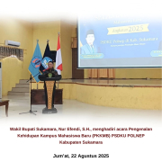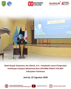 Sukamara, 22 Agustus 2025 — Aula BPG Sukamara pagi ini dipenuhi semangat dan harapan baru saat Wakil Bupati Sukamara, Nur Efendi, S.H., menghadiri acara Pengenalan Kehidupan Kampus Mahasiswa Baru (PKKMB) Program Studi di Luar Kampus Utama (PSDKU) Politeknik Negeri Pontianak di Kabupaten Sukamara. Dalam kesempatan tersebut, beliau menyampaikan sambutan resmi mewakili Bupati Sukamara kepada seluruh peserta dan tamu undangan.