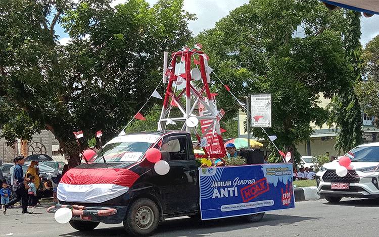 Dalam pawai pembangunan yang digelar dalam rangka Hari Jadi Pemerintah Kabupaten Sukamara Ke 21 dan HUT Ke 78 Republik Indonesia, Diskominfosandi Sukamara mengajak untuk menjadi generasi anti hoax.
