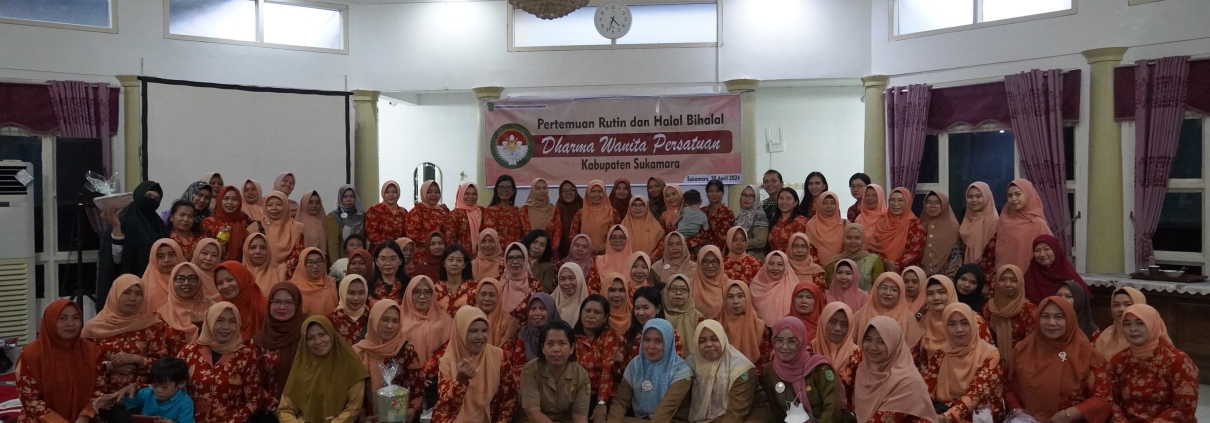 Pada hari Selasa tanggal 30 April 2024 dilaksanakan kegiatan halal bi halal sekaligus pertemuan rutin Dhamra Wanita Persatuan (DWP) Kabupaten Sukamara di Rumah Jabatan Bupati Sukamara. Dalam kegiatan tersebut Pj. Bupati Sukamara beserta istri menyampaikan sambutan dan harapannya kepada seluruh anggota DWP Kabupaten Sukamara yang hadir pada sore hari itu.