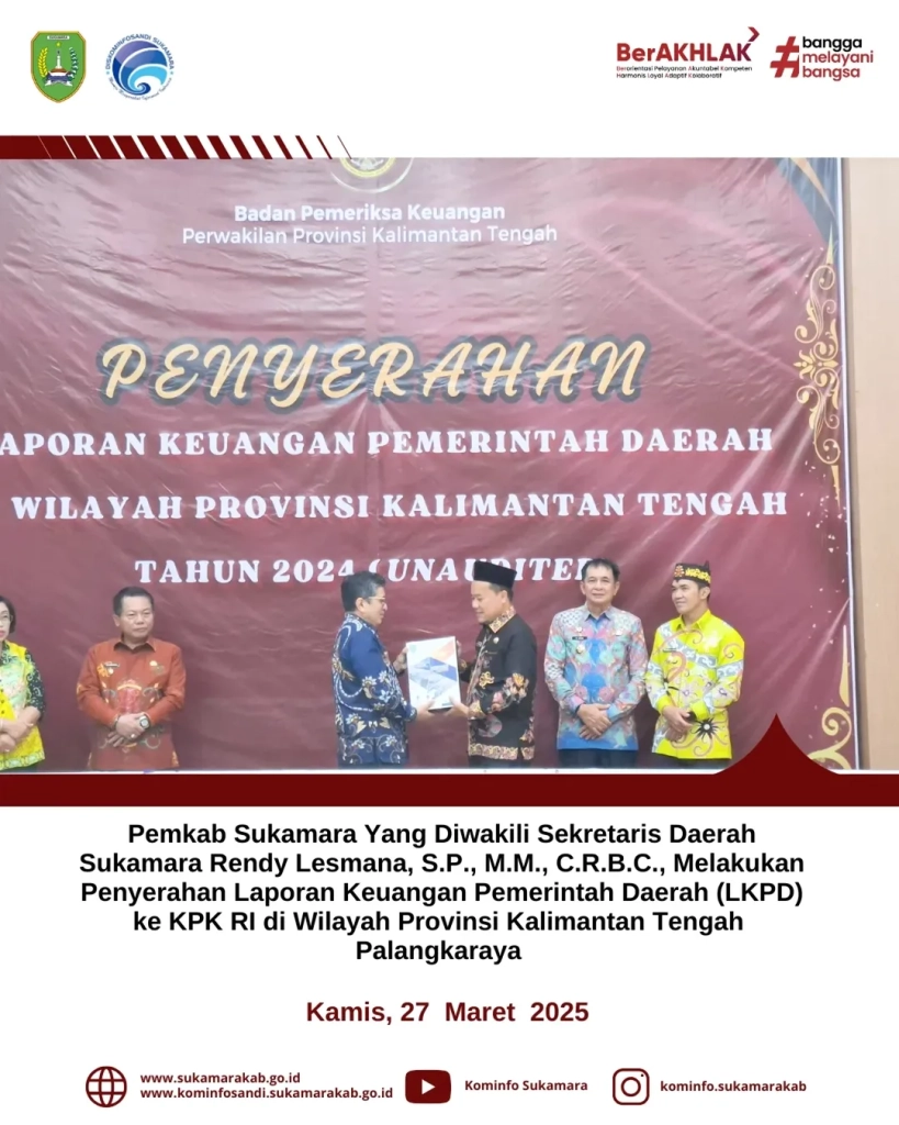 Dalam wawancaranya Sekretaris Daerah Sukamara menyampaikan bahwa pada saat ini Kabupaten Sukamara bersama dengan Kabupaten lainnya di wilayah Kalimantan Tengah telah menyerahkan LKPD tahun 2024 unaudated kepada BPK RI perwakilan Provinsi Kalimantan Tengah sesuai dengan ketentuan yang berlaku. LKPD disampaikan selambat-lambatnya 3 bulan sebelum berakhir setelah berakhirnya tahun anggaran berkenan. Laporan keuangan ini Kabupaten Sukamara melaporkan tepat waktu sebagaimana ketentuan yang berlaku.