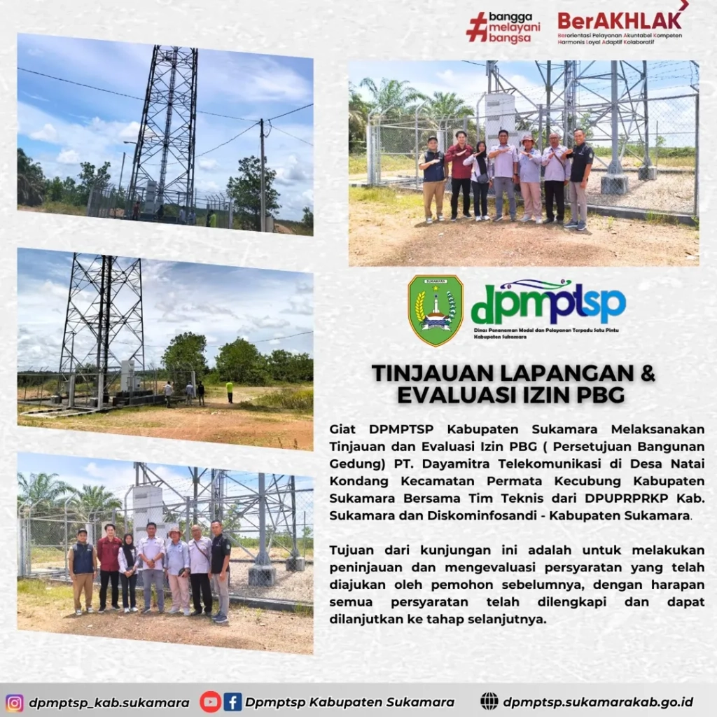 Giat DPMPTSP Kabupaten Sukamara Melaksanakan Tinjauan dan Evaluasi Izin PBG ( Persetujuan Bangunan Gedung) PT. Dayamitra Telekomunikasi di Desa Natai Kondang Kecamatan Permata Kecubung Kabupaten Sukamara Bersama Tim Teknis dari DPUPRPRKP Kab. Sukamara dan Diskominfosandi – Kabupaten Sukamara.